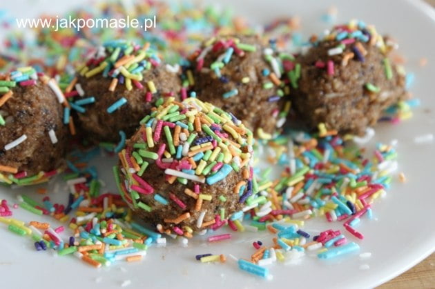 Posypkę wsypuję do głębokiego talerza i toczę kulki ruchem kołowym, lekko dociskając – dzięki temu posypka dobrze przywiera i nie odpada po wyschnięciu. Na słodkie pomysły bez pieczenia zajrzyj też do przepisu na domowe batony energetyczne lub kaszę jaglaną ze śliwkami – suszone śliwki to prawdziwy superfood!