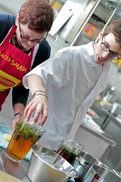 Będąc na warsztatach w kuchni Winiary, Tomasz Woźniak zaprezentował przepis podobny do mojego (więcej tutaj i tutaj), ale z dodatkiem pomarańczy. Zdjęcia z warsztatów poniżej.