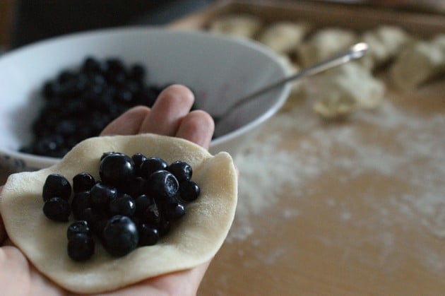 Ciasto zagniatamy jak na pierogi – szklanka mąki pszennej, 1 jajo oraz woda. Jagody należy delikatnie opłukać i powoli sklejać pierożki.